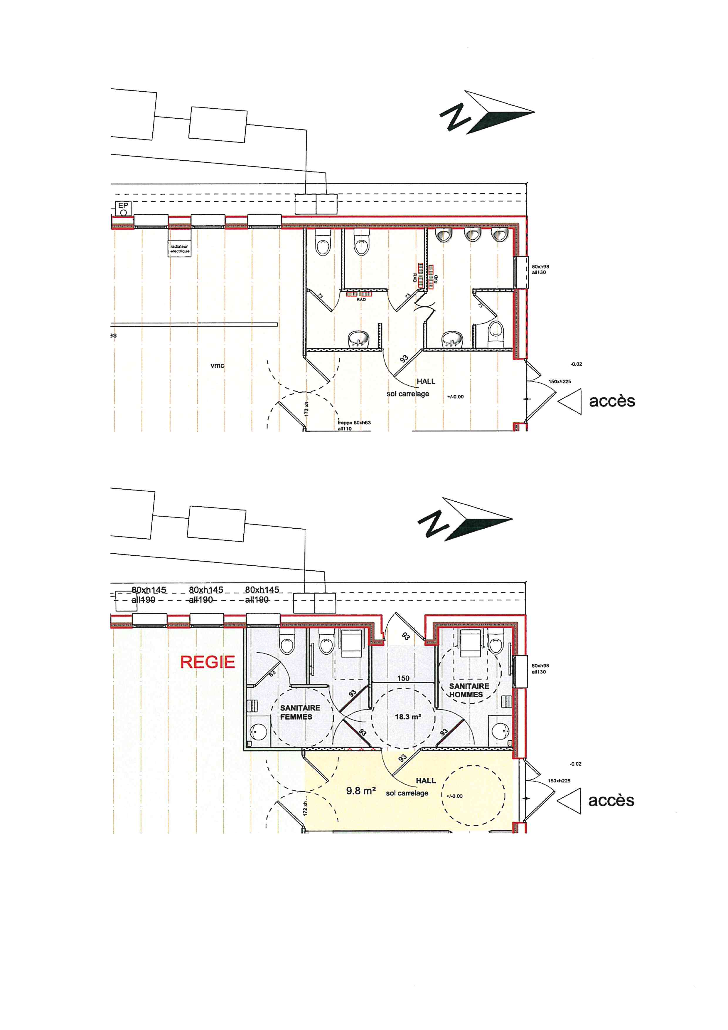 Ci-dessous les plans pour le projet de la salle des fêtes (avant et après travaux) :